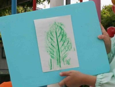 葉っぱのフロッタージュ 先日、お天気が良い日に、年中さんが葉っぱのフロッタージュをしました。 園庭の桜の葉っぱなどを取って、上手にこすりました。 こするとは言っても力の加減がうまくいかないと上手にできません。 なかなか上手くできない子も1度練習すると、とてもきれいに成功していました。 さて、こちらのフロッタージュも6月の制作に使用します。どのようになるか楽しみです。 (注)フロッタージュ・・・木の葉などに薄い紙を当てて鉛筆またはクレヨンで軽くこすり,葉脈や木目を浮き出させる絵画表現の手法