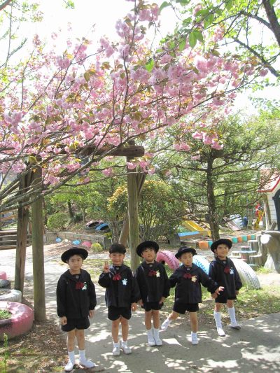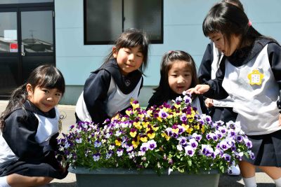 藤のお花が咲きました いいお天気が続いています。 運動場には、子供たちの大好きな「こいのぼり」が風に乗ってゆったりと泳いでいます。 さて、今年はお花のあたり年なのか、 最近、あまり咲いていなかった「藤」のお花が見事にさきました。 年長さんも、今まで見たこともないきれいさにびっくり。 プランターのビオラや芝桜もきれいに咲いて、子供たちもうれしそう。 まだ、つぼみ状態のつつじもきっと来週には満開になるでしょう。 楽しみです。