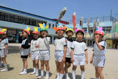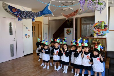 こどもの日の由来を先生たちから聞いて、こいのぼりの歌を大きな声で歌いました。