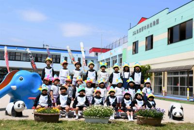 その後は、せっかくなので、園庭のこいのぼりと一緒に記念撮影。